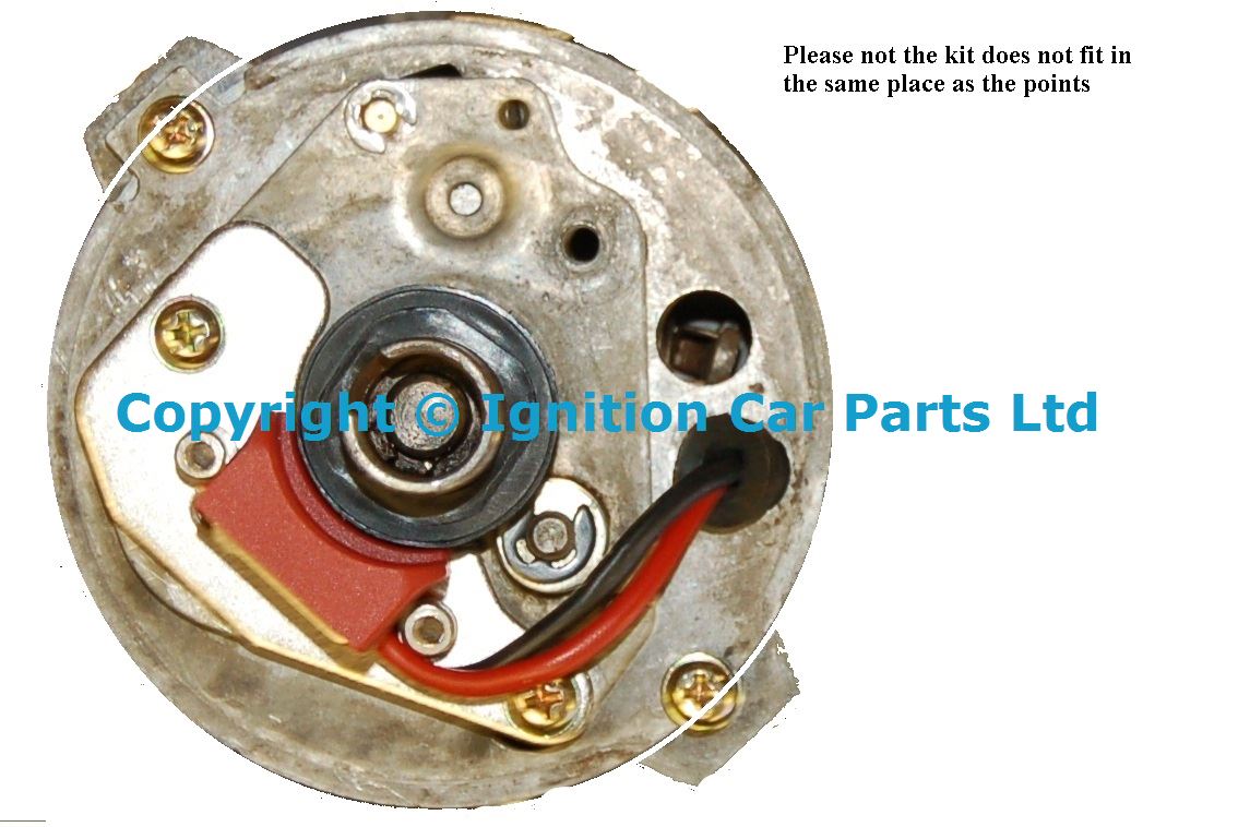 Ford Motorcraft distributors fitted with Ultra spark electronic ignition please note that the smaller end of the base plate fits near to the pin with the cir clip , this picture is of a cross flow distributor Pinto and V6 have the plate on the other side