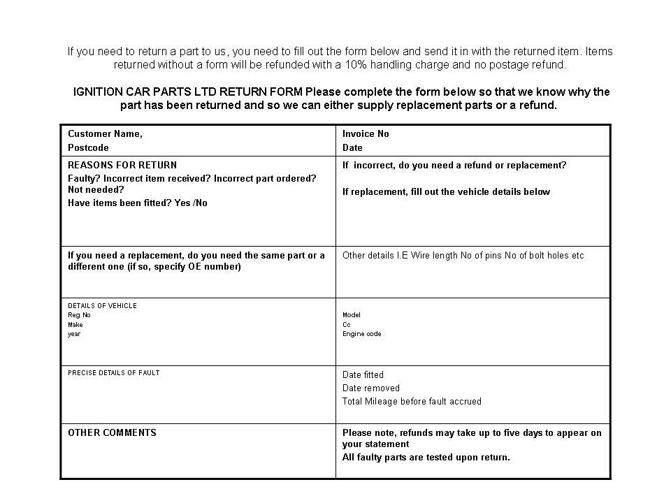 If you need to return a part under warranty please click here