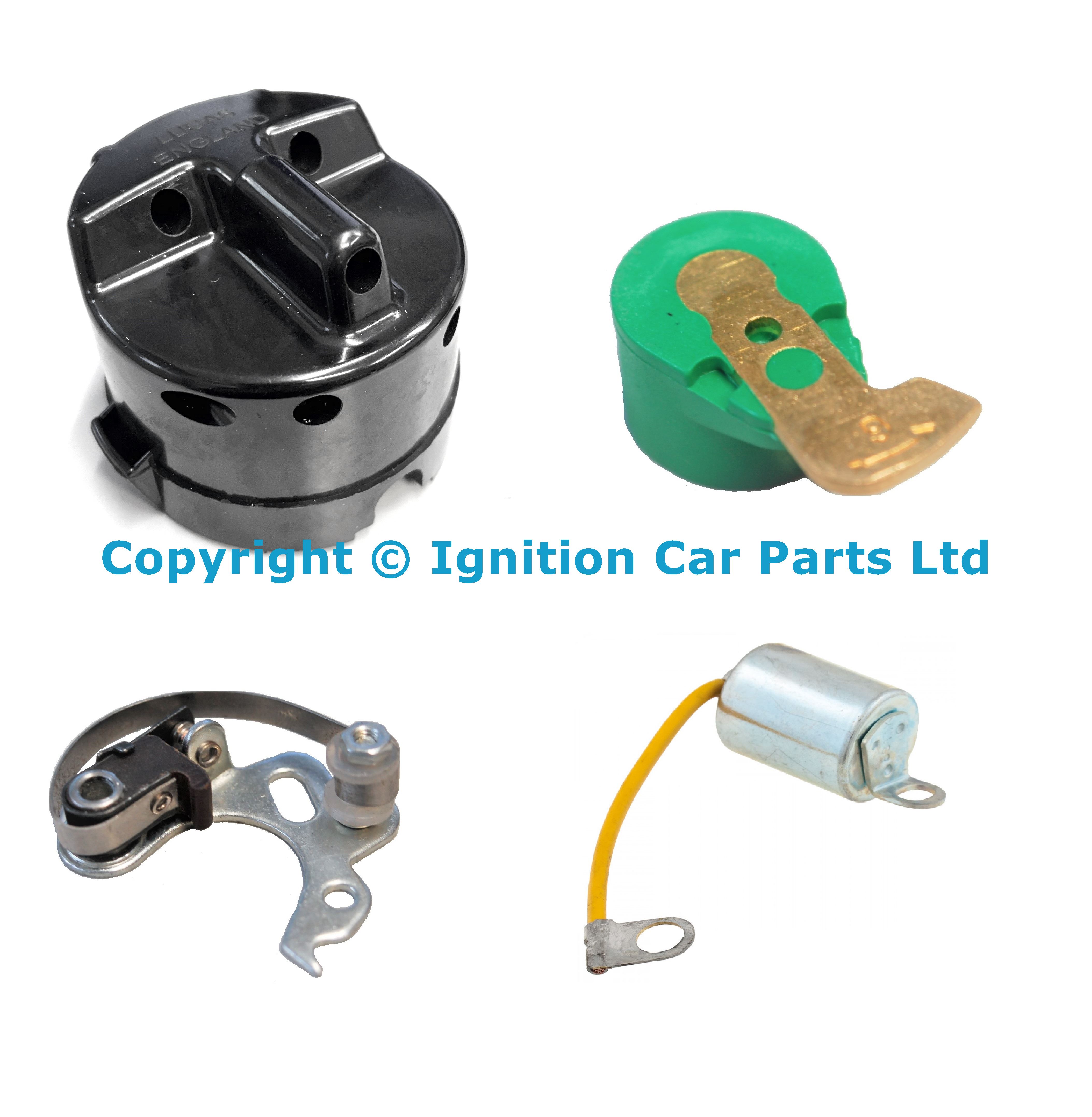 Distributor Repair kit for Lucas 25D6 Distributors for vehilces requiring a side entry cap with the cutout for the low tension block directly below the cutouts for the Ht-leads.
