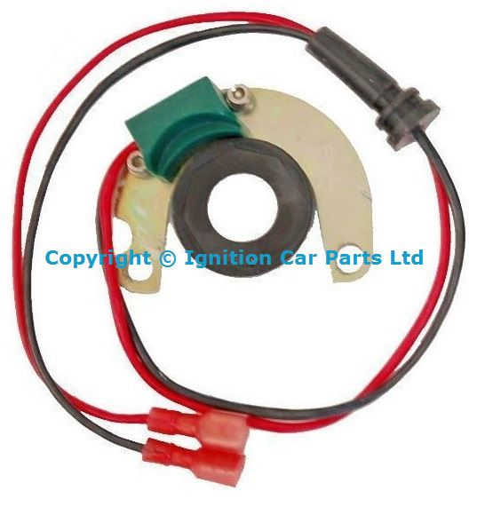 Triumph Stag Electronic ignition kit, Fits inside distributor to make electronic ignition, -. this easy to fit system can transform any classic into a reliable everyday mode of transport. Not affected by damp conditions, better fuel Economy, better starting. Easy to fit often only taking 5 minutes, no holes to drill, no complicated wiring, no need to get spark gap or dwell correct as this is automatic and best of all nothing bolted to the outside of the distributor. These smaller than a match box these units fit inside the distributor in the same place as the points, just 2 wires come out from the distributor to the ignition coil