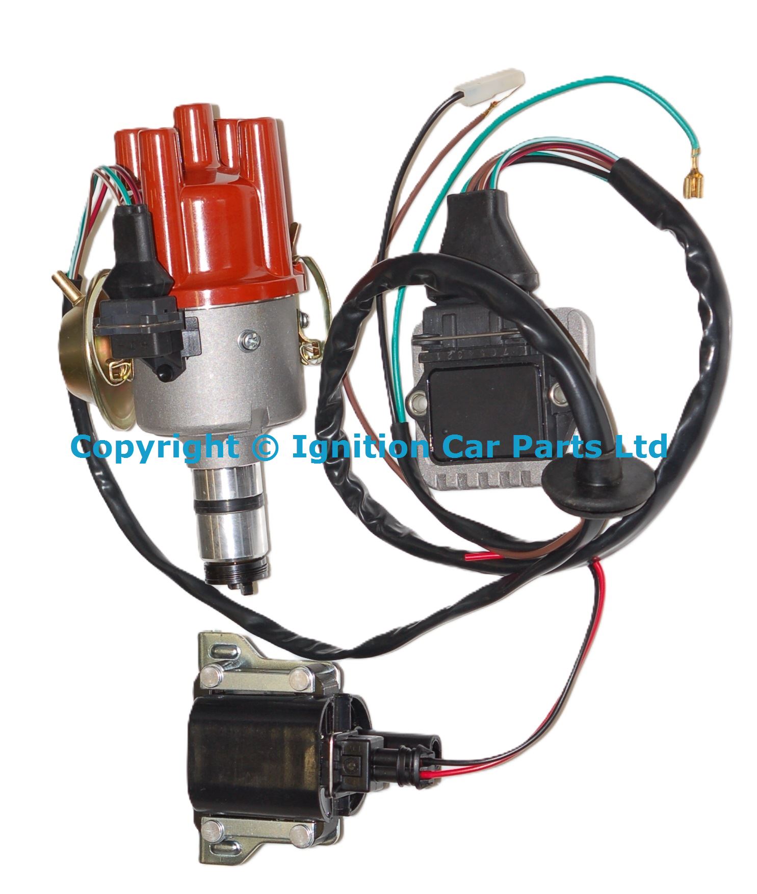 New High output VW electronic distributor fitted with Hall sensor for a more stable even output, kit includes New Distributor coil Module Wiring harness