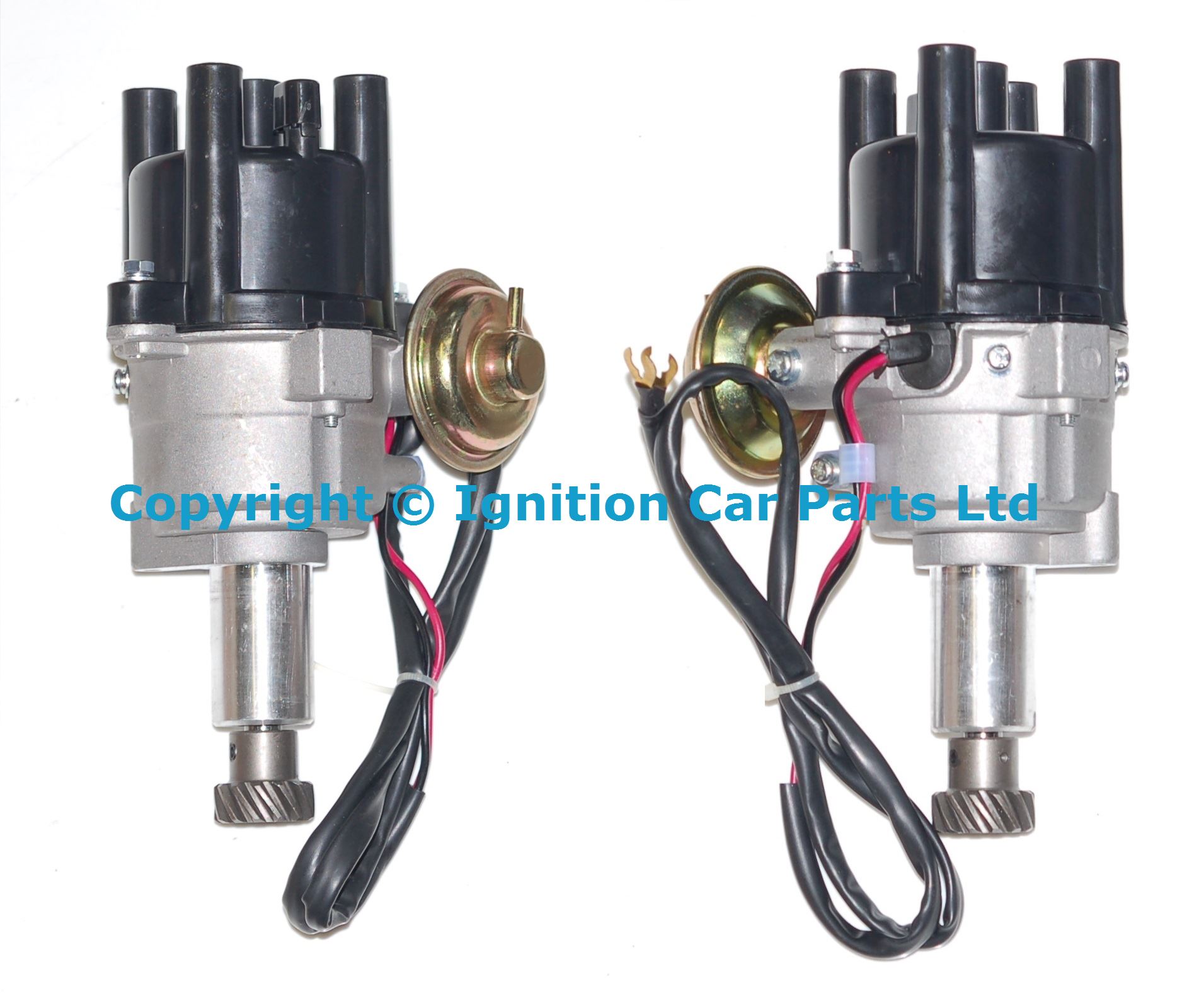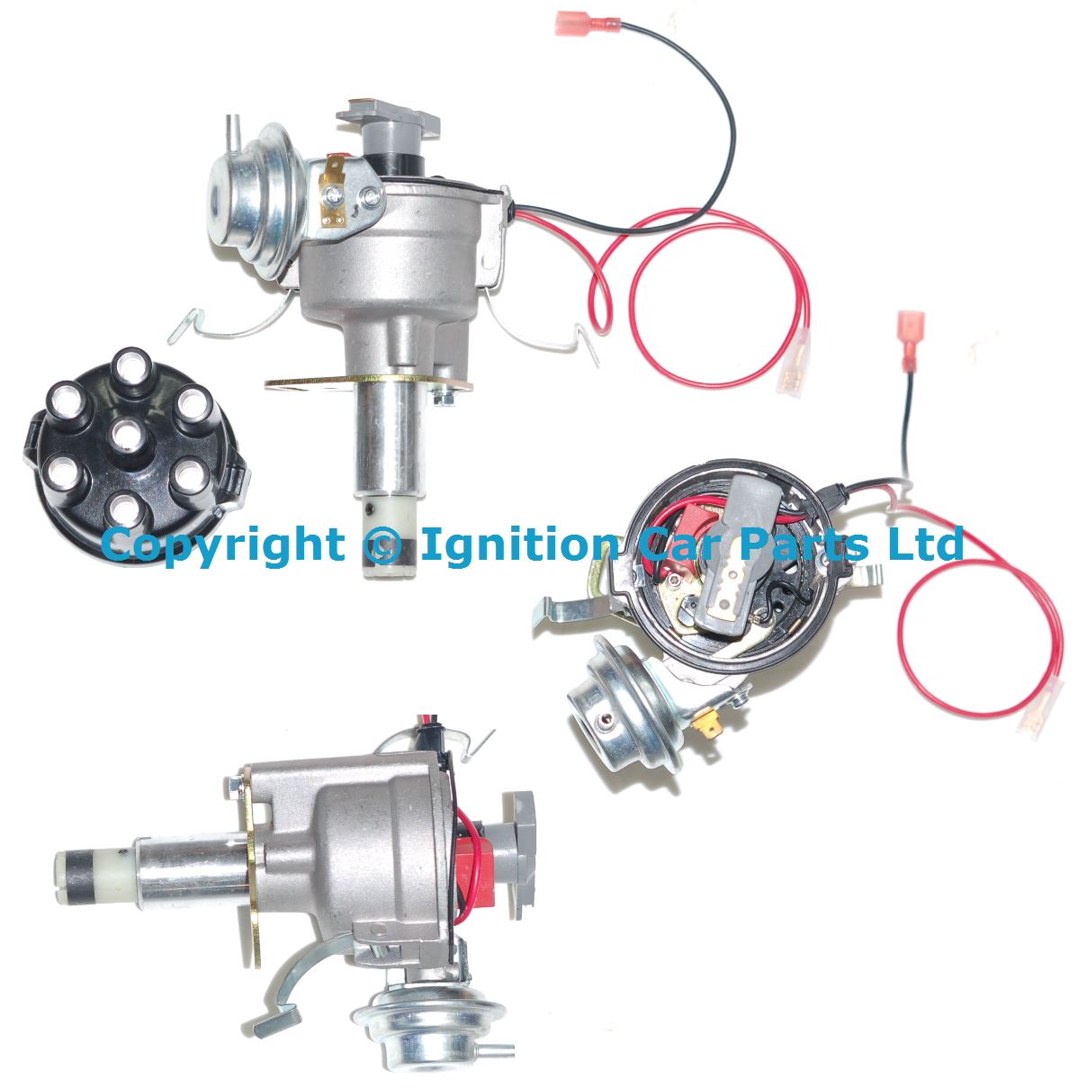 New Points Distributor , also see our Up Grade to electronic ignition kit no more cold morning starting problems and better fuel economy New ultra-spark Electronic Distributor complete with new cap and rotor arm ignition coil to replace points distributors Easy to fit just two wires to connects to the coil, just connect the Red wire to the + side and the Black to the - side of the coil
