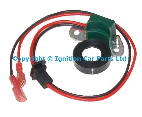 Electronic ignition conversion kit for 8-cylinder Ford, FoMoCo, AutoLite & Motorcraft Distributors, Fits inside distributor to make electronic ignition, this easy to fit system can transform any classic into a reliable everyday mode of transport. Not affected by damp conditions, better fuel Economy, better starting. Easy to fit often only taking 5 minutes, no holes to drill, no complicated wiring, no need to get spark gap or dwell correct as this is automatic and best of all nothing bolted to the outside of the distributor. These smaller than a match box these units fit inside the distributor in the same place as the points, just 2 wires come out from the distributor to the ignition coil